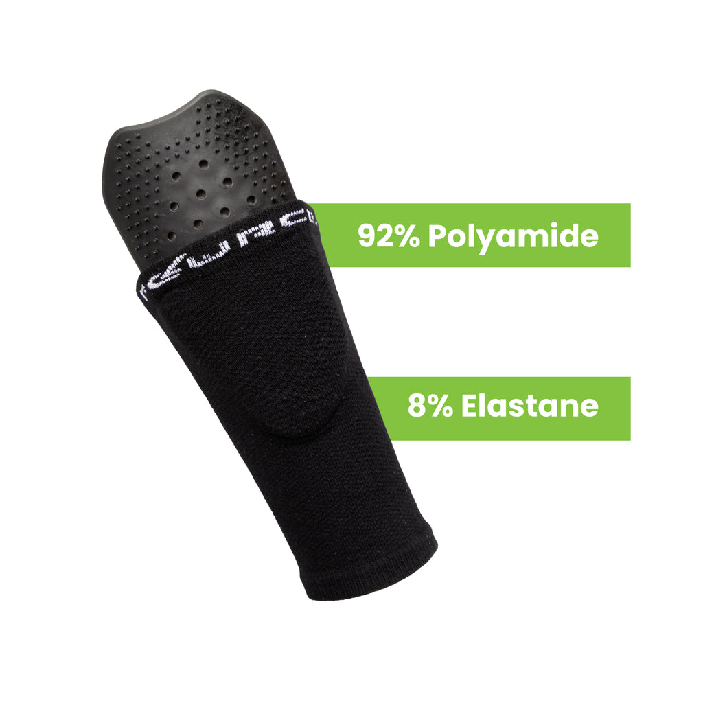 Ziehe die Schienbeinschoner einfach über deine Stutzen – fertig. Kein Verrutschen dank FO4URCE Hakentechnologie.